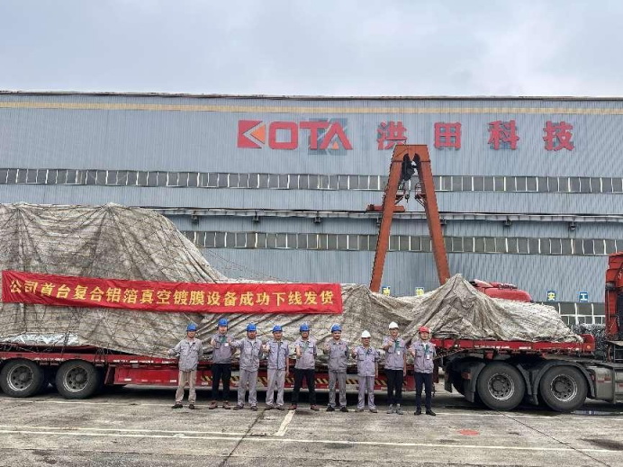2024年7月12日,洪田科技在始終堅守“智能制造、成就客戶、創造價值”的企業宗旨下,以持續的技術革新作為企業發展的核心驅動力,再次揚帆起航,經過近八個月的研發攻關和產品質量驗證,公司團隊所研發的首臺復合鋁箔真空鍍膜設備成功下線發貨。