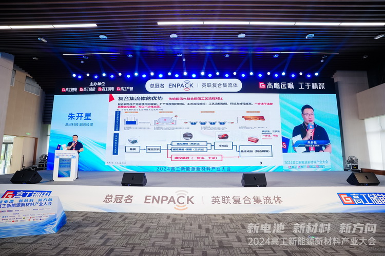 洪田科技副總經理兼董事會秘書朱開星代表公司參加本次大會,并發表了“真空鍍膜 集流勇進”的主題演講。